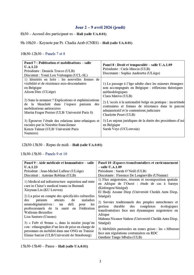 Jour 2 – 9 avril 2026 (jeudi) : 8h30 à 17h40